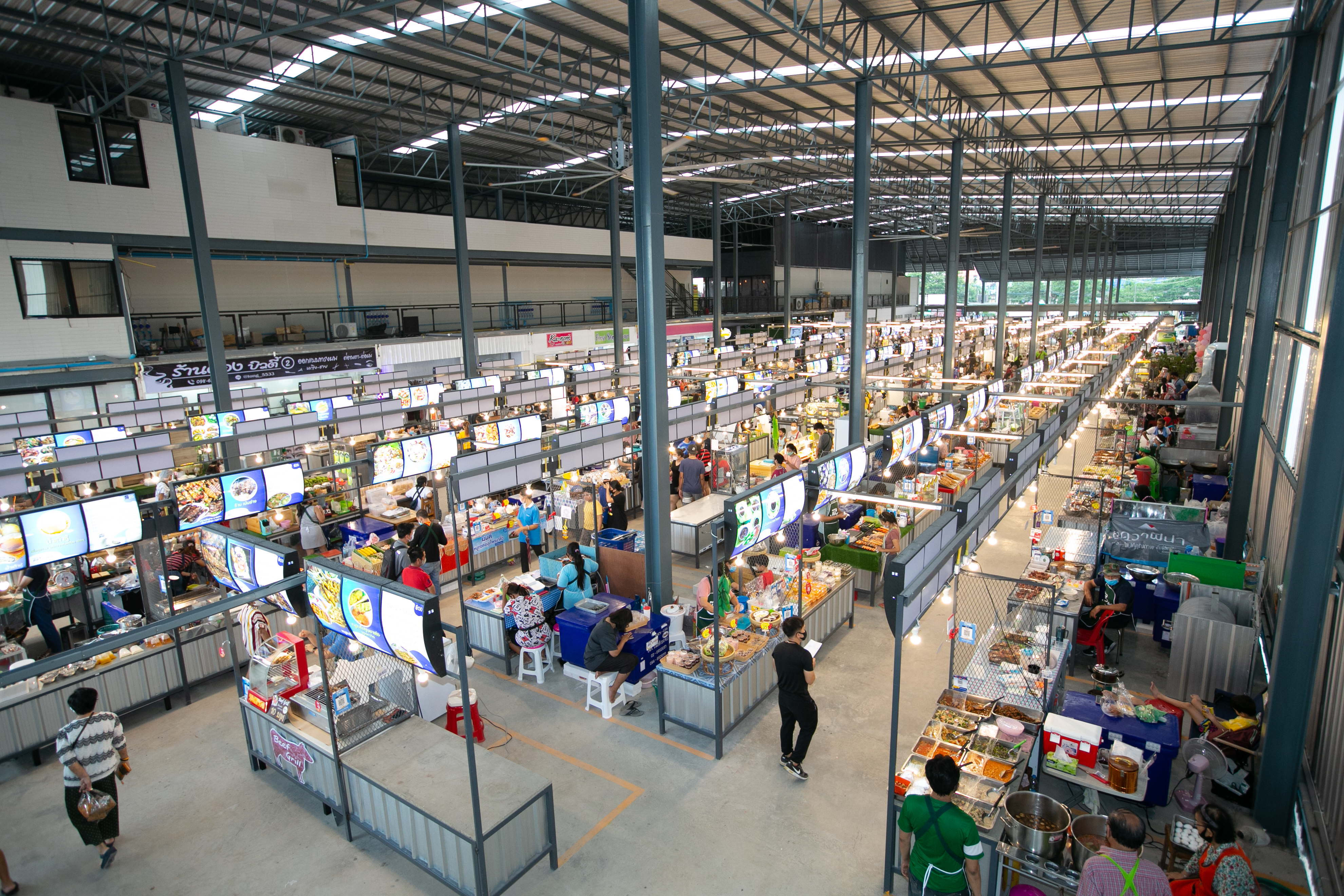 เรียกว่าเป็นตลาดไฮโซได้เลย เพราะรูปแบบการจัดร้านที่ดูทันสมัย เป็นระเบียบ สะอาด บรรยากาศโล่ง โปร่งสบาย มีพัดลมในอาคารตัวเบ่อเร่อ และมีร้านค้า ร้านอาหาร จากพ่อค้า แม่ค้า ทั้งรุ่นใหม่ และรุ่นเก๋ามาโชว์ฝีมือความเด็ดกว่า 300 ร้านค้า เช่น อาหารของกิน ,ขนมหวาน, เครื่องดื่ม ให้เลือกหลากหลาย และราคาไม่แพง ส่วนใครชอบแนวช้อปปิ้ง ที่นี่ยังมีโซนร้านแฟชั่น เสื้อผ้า จิปาถะ รวมถึง ร้านสะดวกซื้อ ร้านขายยาคุณภาพมาตรฐาน ศูนย์ล้างรถชื่อดัง